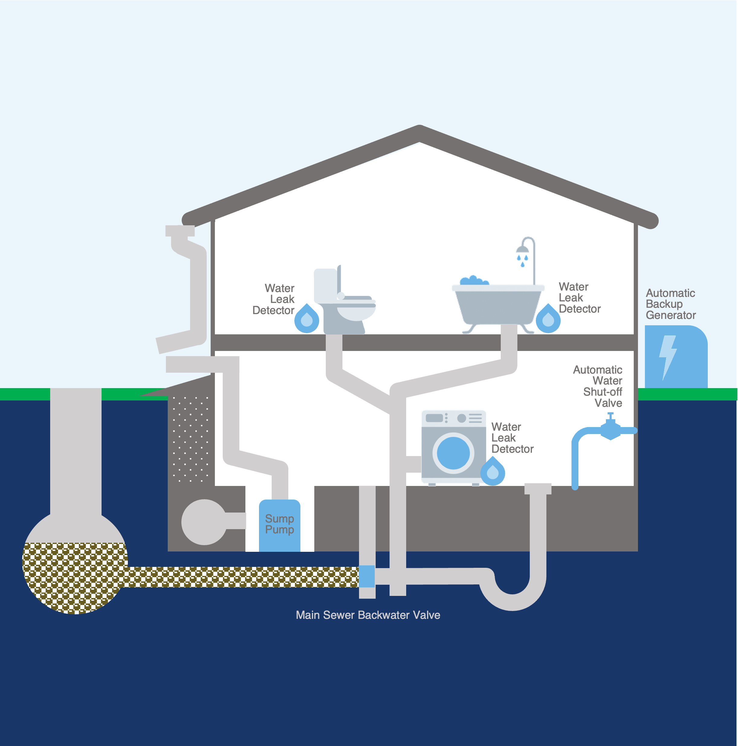 For existing policyholders, we will pay 50% of the expenses (up to $1,000) for the installation of an emergency backup generator, water leak detector, automatic shut-off valve, main sewer backwater valve or backup sump pump.